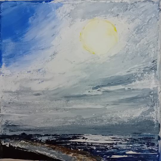 Moin und herzliche Grüße von der schönsten nordfriesischen Insel Föhr! Weil es in den vergangenen beiden Jahren keine von mir gemalten und gespachtelten Adventskalender gab, gibt es Anfang dieses Jahres einen 24 tägigen Februarkalender. Jeden Morgen im Februar entscheide ich, welches Malmotiv am besten genau zu diesem Tag passt. Auf eine 20x20 cm große Leinwand spachtele oder male ich mit Acrylfarbe ein aktuelles Februar Föhr Bild. Wenn das Bild bis spätestens 24 Uhr fertig ist, versende ich es bzw. stelle es ins Netz und zeige es auf meiner Homepage www.petra-kleiboemer.de. Wie ihr seht, ist die zu behängende Holzwand vorbereitet. Sie hängt in meiner Küche sicher hinter der Tür an der Wand. Wer an einem Bild interessiert ist, melde sich bitte bei mir. Bis zum 25.Februar bleiben alle Werke hängen, damit der Februarkalender einmal komplett zu sehen ist.